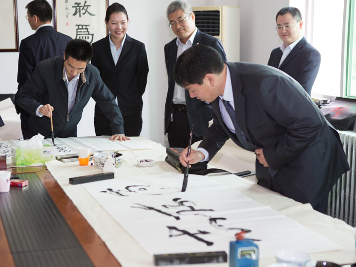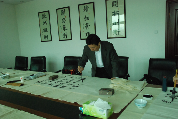 为弘扬传统文化,丰富员工业余生活,5月6日上午,星空平台举办了首届书画艺术学习交流活动。本次活动邀请了中国书法家协会会员孟云飞博士、中国书法家协会理事张铜彦先生、中国书法家协会编辑出版委员会副主任王荣生教授、人民艺术家协会理事于瑛先生等国内知名书画大师,各位书画大师在活动现场进行了艺术创作表演,挥毫泼墨,交流技艺,为星空平台留下了数十副墨宝,还对部分员工的书画作品进行了悉心指导。公司员工现场欣赏了书画大师的艺术创作,并聆听了有关书画艺术鉴赏知识的介绍,部分员工还在活动现场进行创作,听取书画大师的讲解示范和点评。