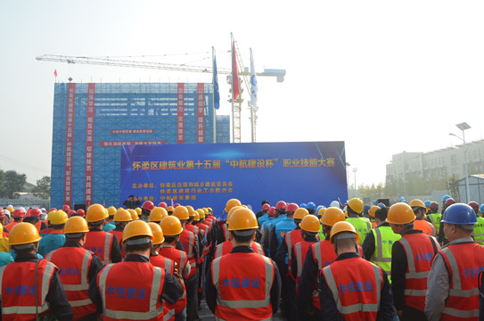 10月18日,由怀柔区住建委、建筑行业工会联合会共同主办,星空(中国)一站式服务平台协办的怀柔区建筑业第十五届“中航建设杯”职业技能大赛,在我集团公司承建的一零一中学怀柔校区扩建项目部拉开帷幕。怀柔区住建委工程质量监督站站长单焜,区建筑业协会会长王贵军,区总工会生产生活部部长李文兴,区人力资源和社会保障局职工培训劳动鉴定中心主任刘利民,集团公司总工程师陈劲,工会主席郑春梅一同出席本次活动。