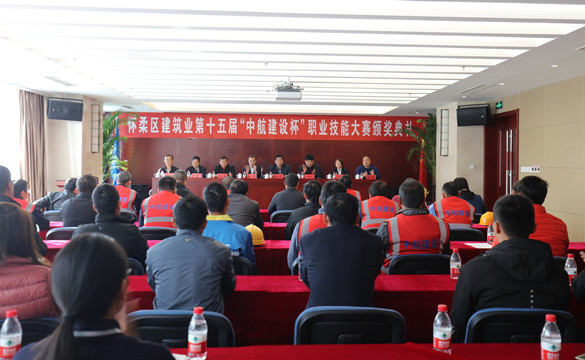 10月25日上午,怀柔区建筑业第十五届“中航建设杯”职业技能大赛颁奖典礼在星空(中国)一站式服务平台总部三层多功能厅举行。怀柔区建筑业协会会长、大赛组委会副主任王贵军,区总工会副主席解忠明,集团公司总工程师、大赛组委会副主任陈劲一同参加,同时到场的还有各参赛单位代表及获奖选手共计50余人。