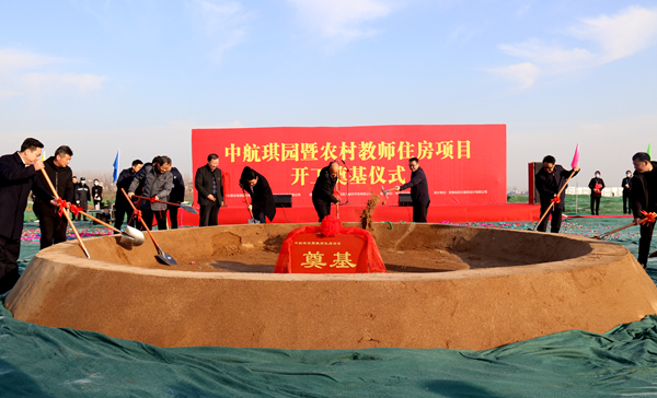 随后,正阳县委常委、统战部长王振伟宣布中航琪园暨农村教师住房项目开工奠基。在欢快的乐曲声中,出席仪式的领导嘉宾共同为中航琪园项目的开工建设奠基培土。