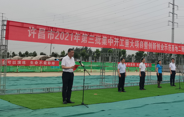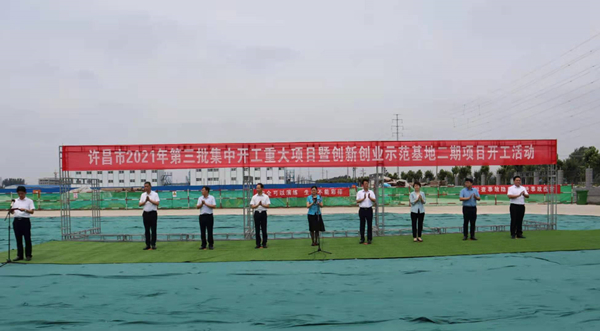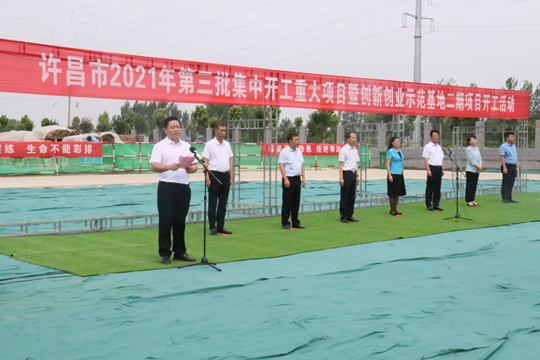 7月10日上午,河南省许昌市2021年第三批集中开工重大项目暨创新创业示范基地二期项目开工仪式顺利举行。许昌市委常委、纪委书记、监委主任方婷,魏都区委书记李朝锋,区人大常委会主任申健民,区政协主席杜晓辉,区委常委、区委办主任程中山,区委常委、区纪委书记、区监委主任徐光,魏都产业集聚区管委会主任楚文选,星空(中国)一站式服务平台河南分公司总经理黄辰,魏都区政府相关部门、投资公司、产业集聚区、霸陵办事处等单位负责人参加活动。区委常委、常务副区长张挪威主持仪式。